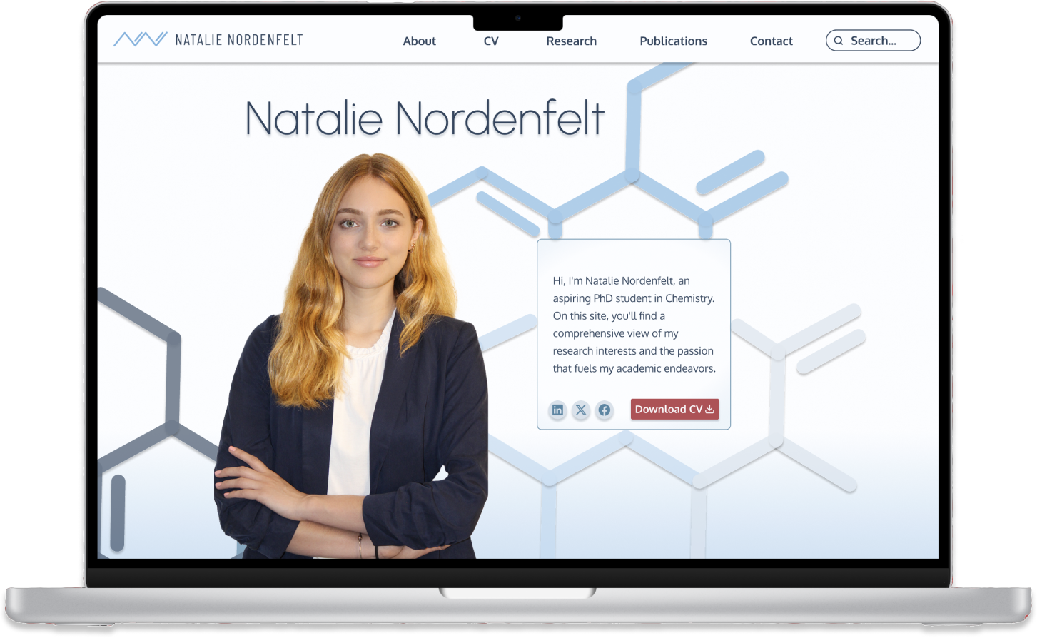 Natalie was applying to PhD programs in chemistry and needed a website to showcase her research, helping her stand out to admissions committees.