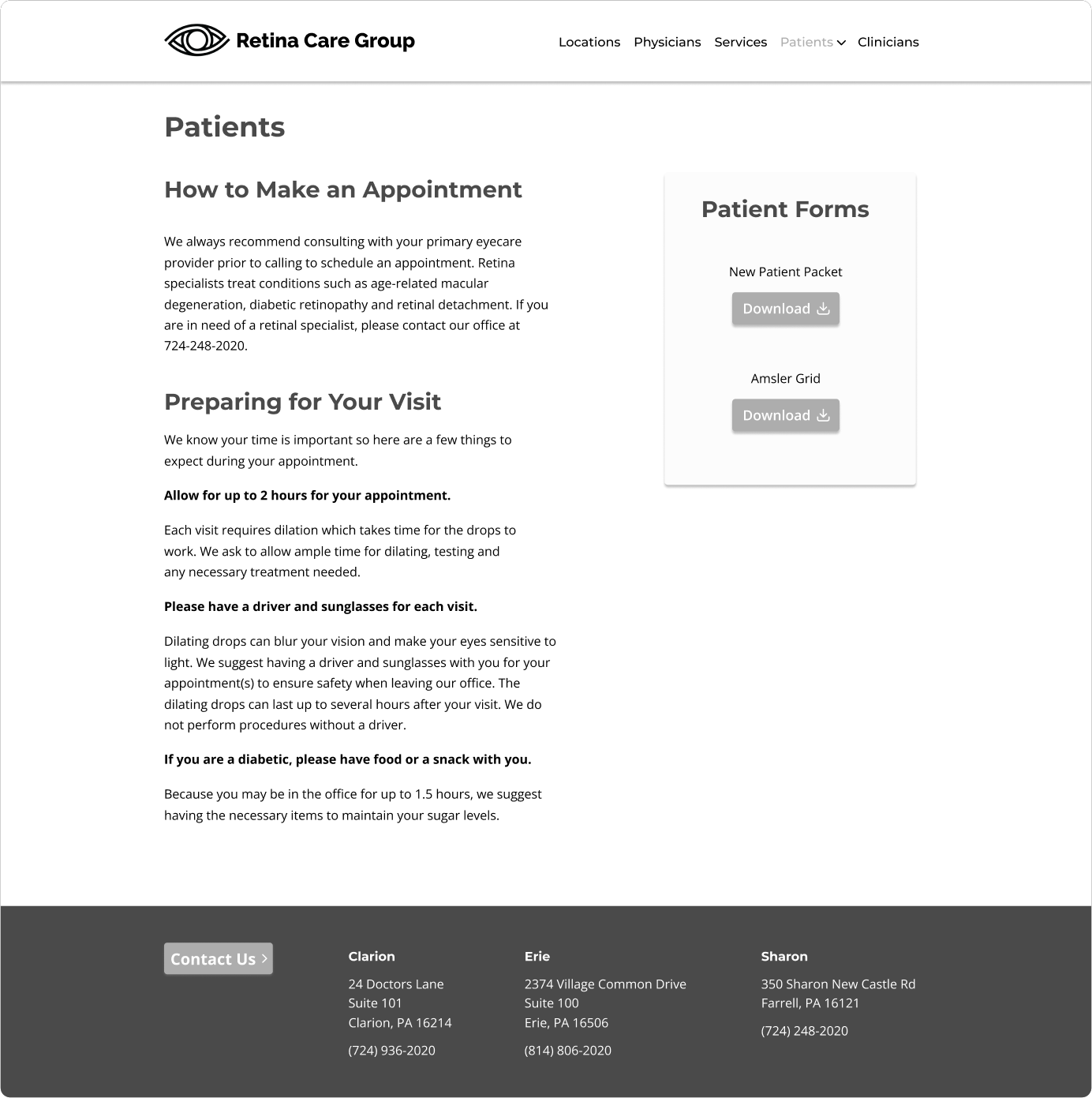 1. Go to the Retina Care Group homepage.